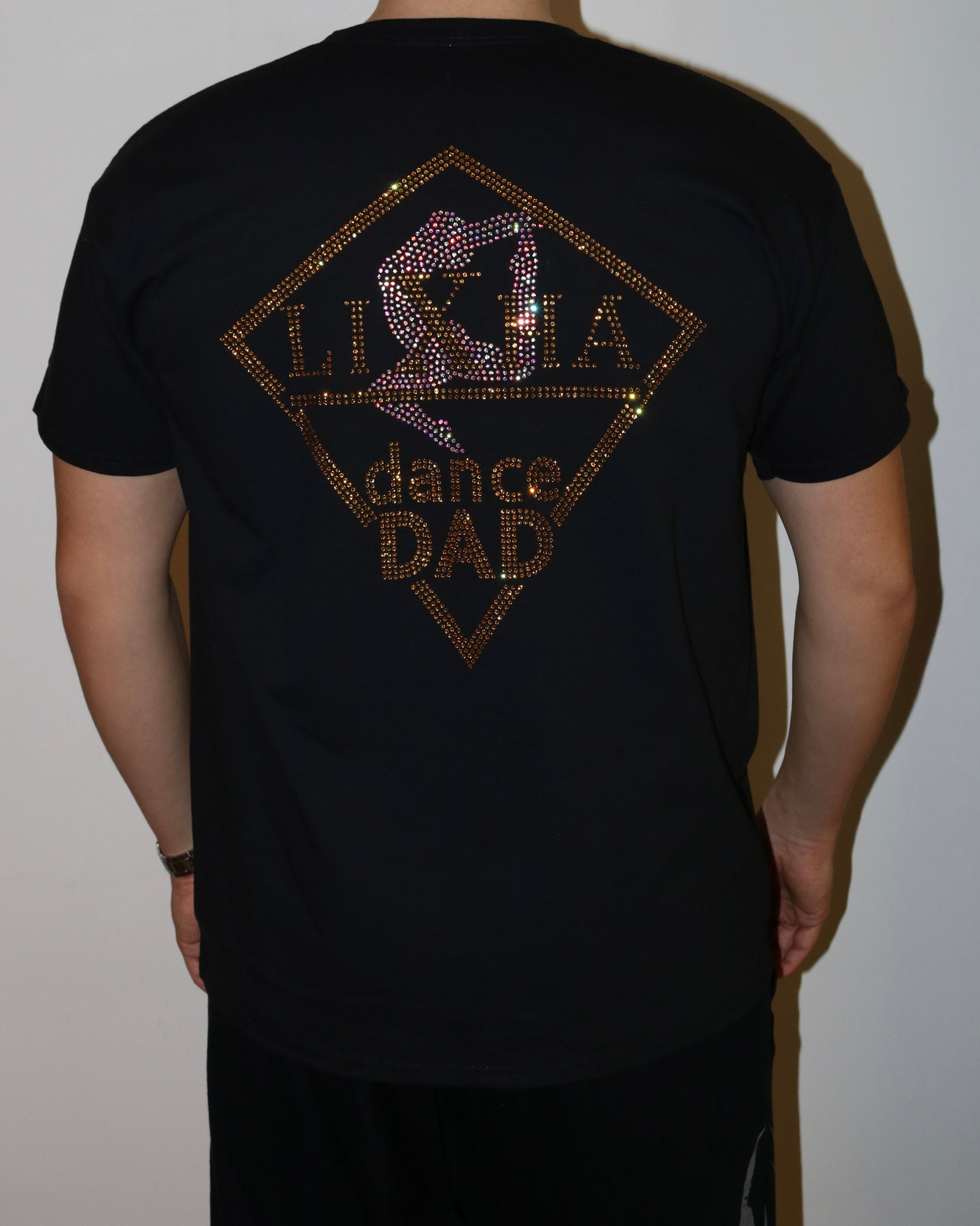 Välj Dance Dad-design och om du önskar att få den tryckt på framsidan eller på baksidan. Vi trycker en mindre LiXha-design på bröstet fram om Dance Dad-designen trycks på baksidan.