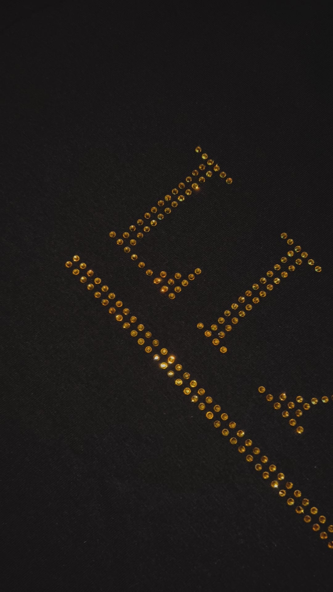 Unisex t-shirt i Belcoro® bomull med glittrande guldfärgade (Topaz) rhinestone designs!