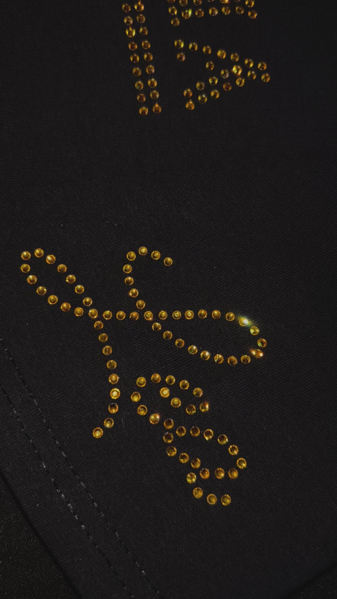 Klassisk unisex t-shirt i bomull med glittrande guldfärgade rhinestone designs!