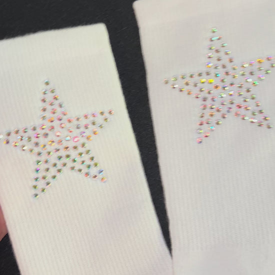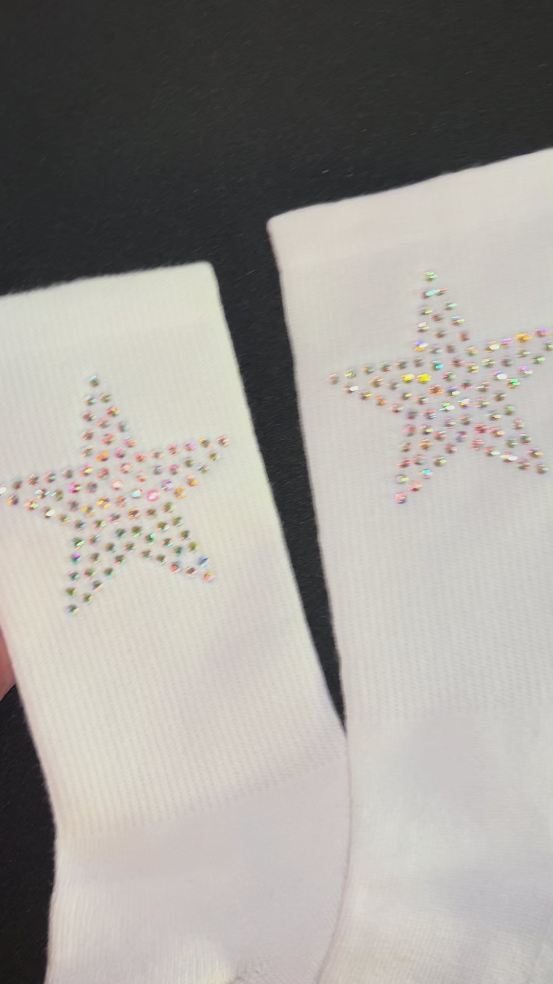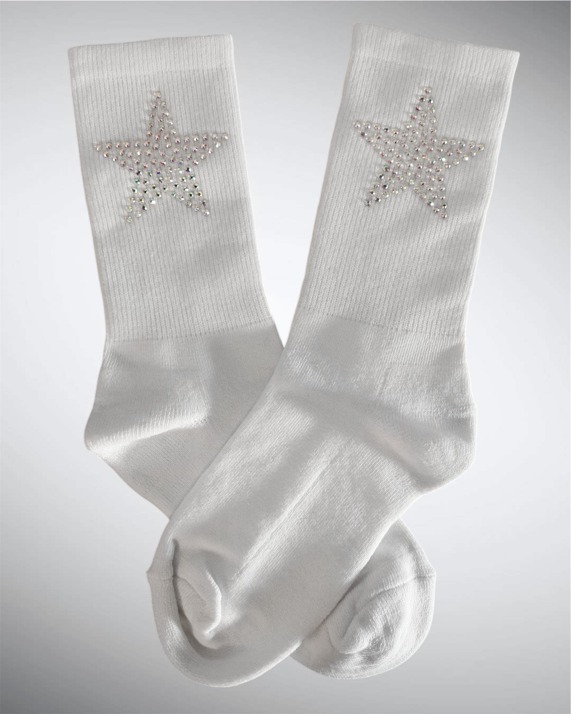 Ribbade ankelstrumpor i unisexmodell med glittrande stjärna i rhinestones i den färg du väljer.