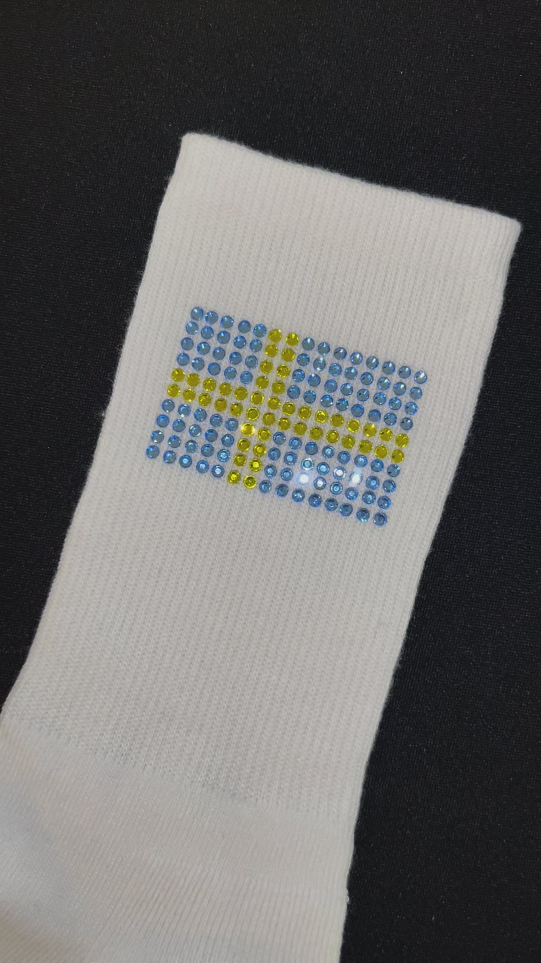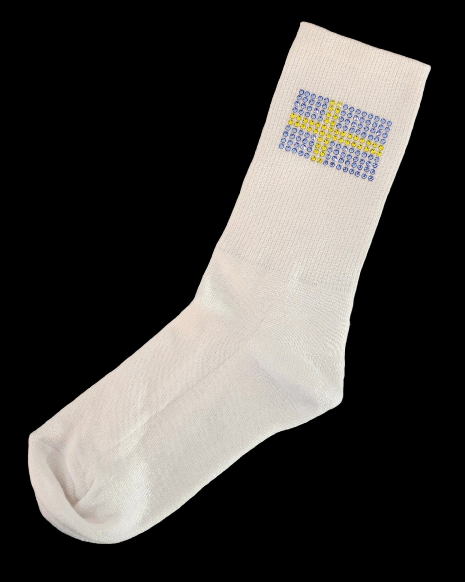 Ribbade ankelstrumpor i unisexmodell med Sveriges flagga i glittrande i rhinestones.