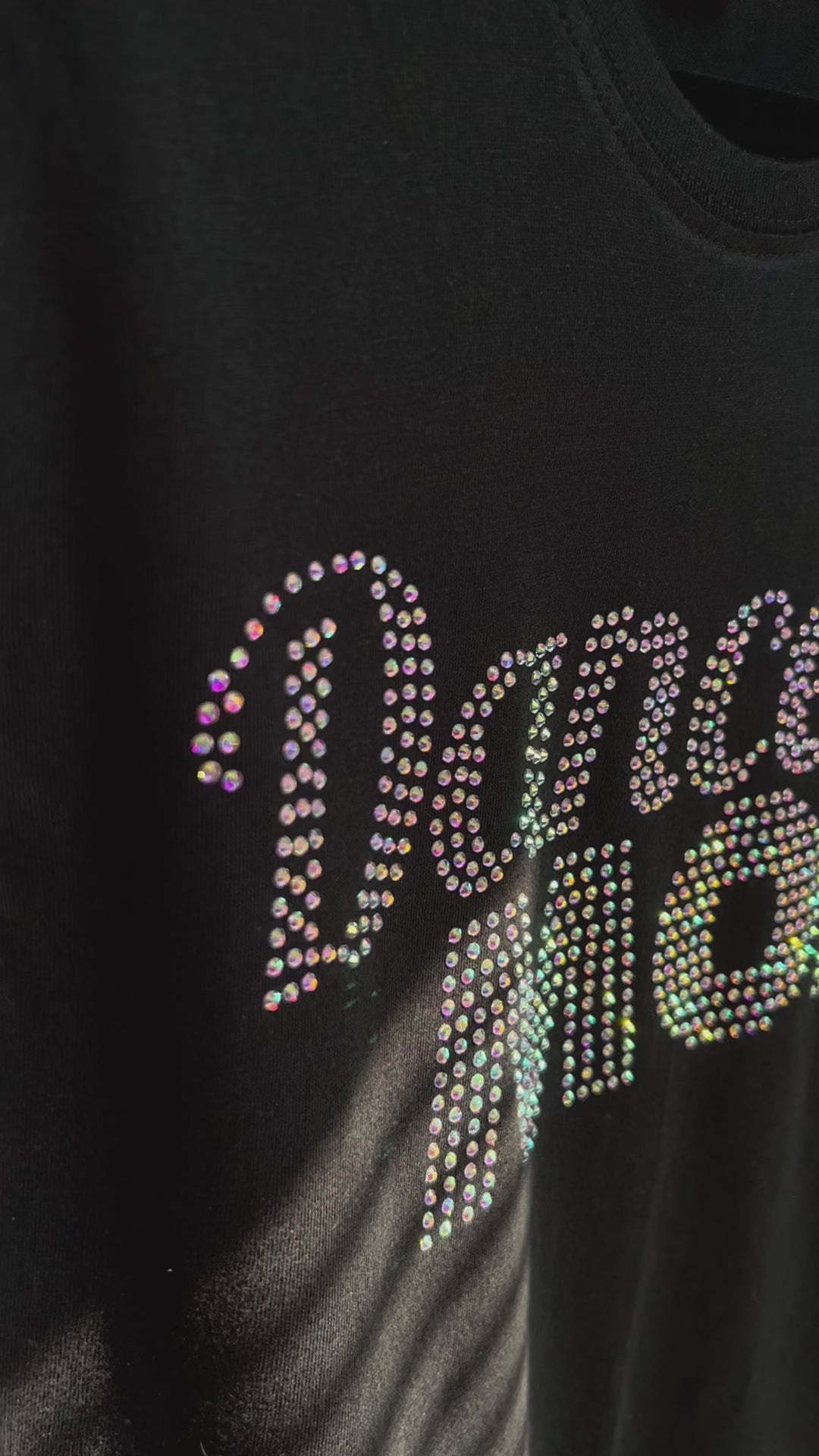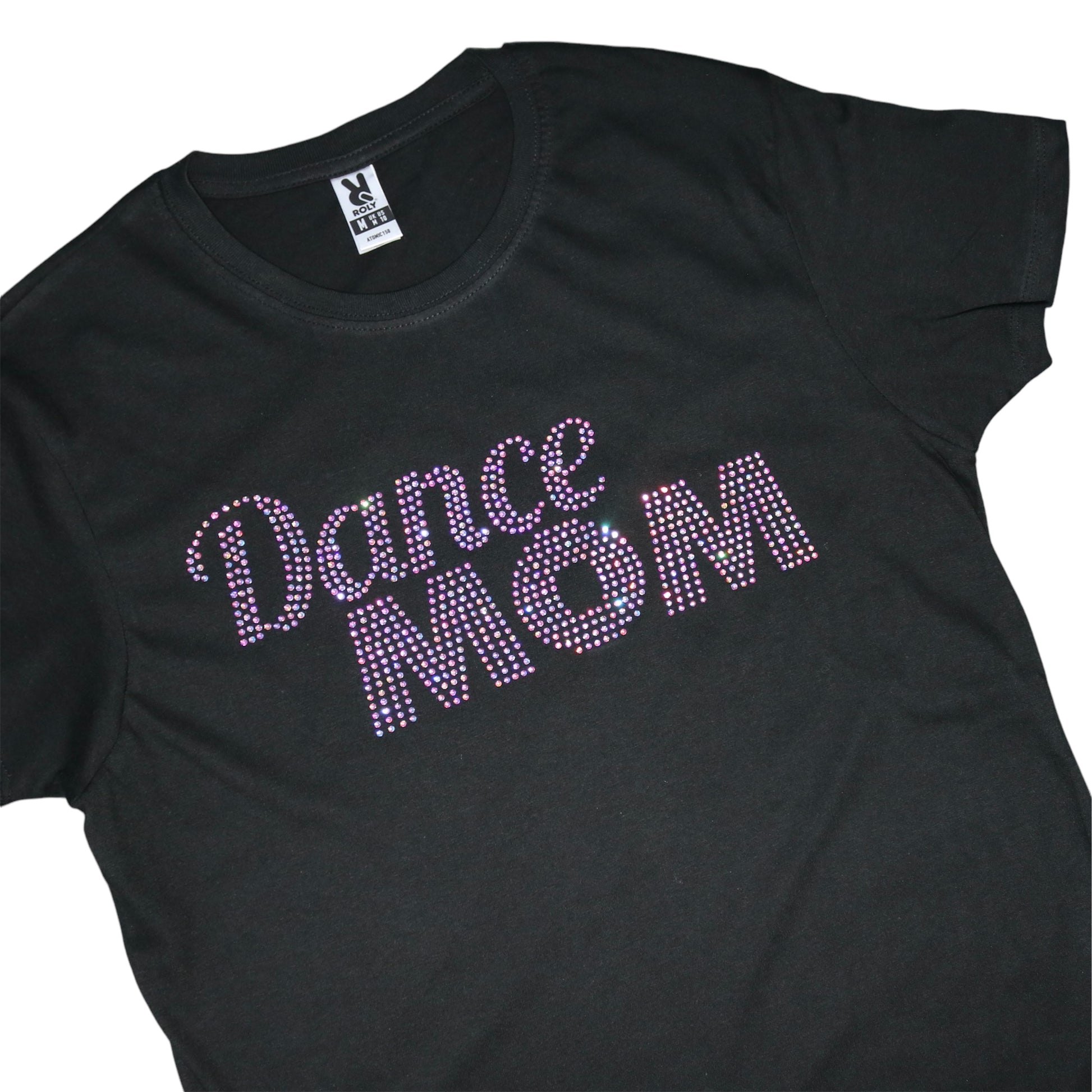 Dance MOM är tryckt i glittrande rhinestones i färgen crystal AB.