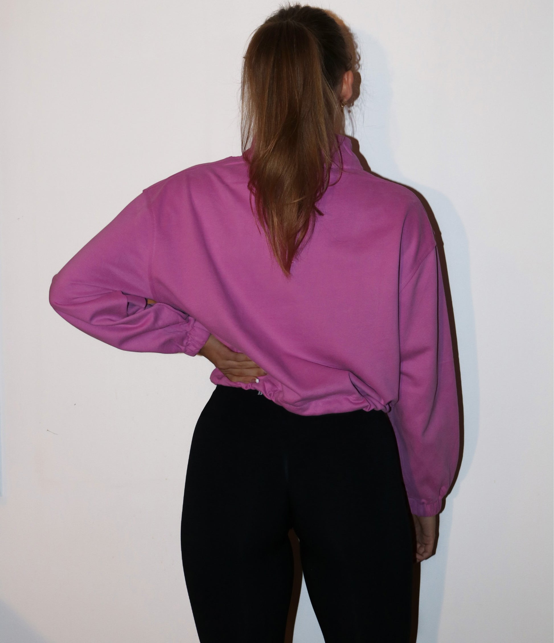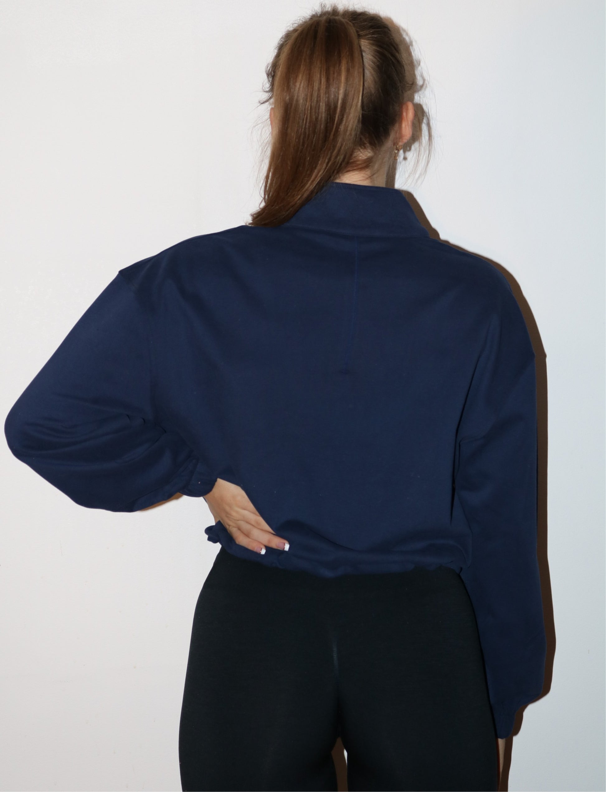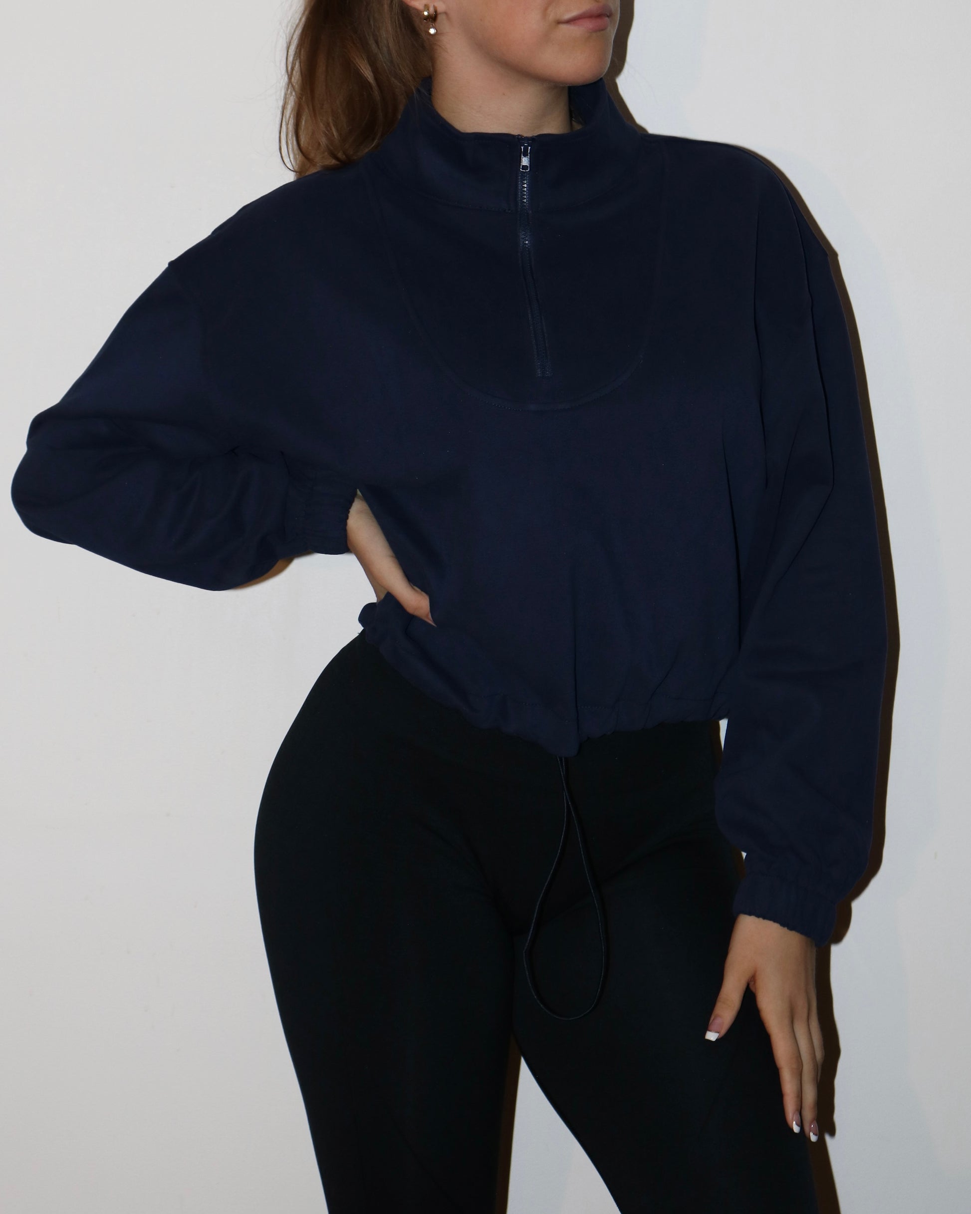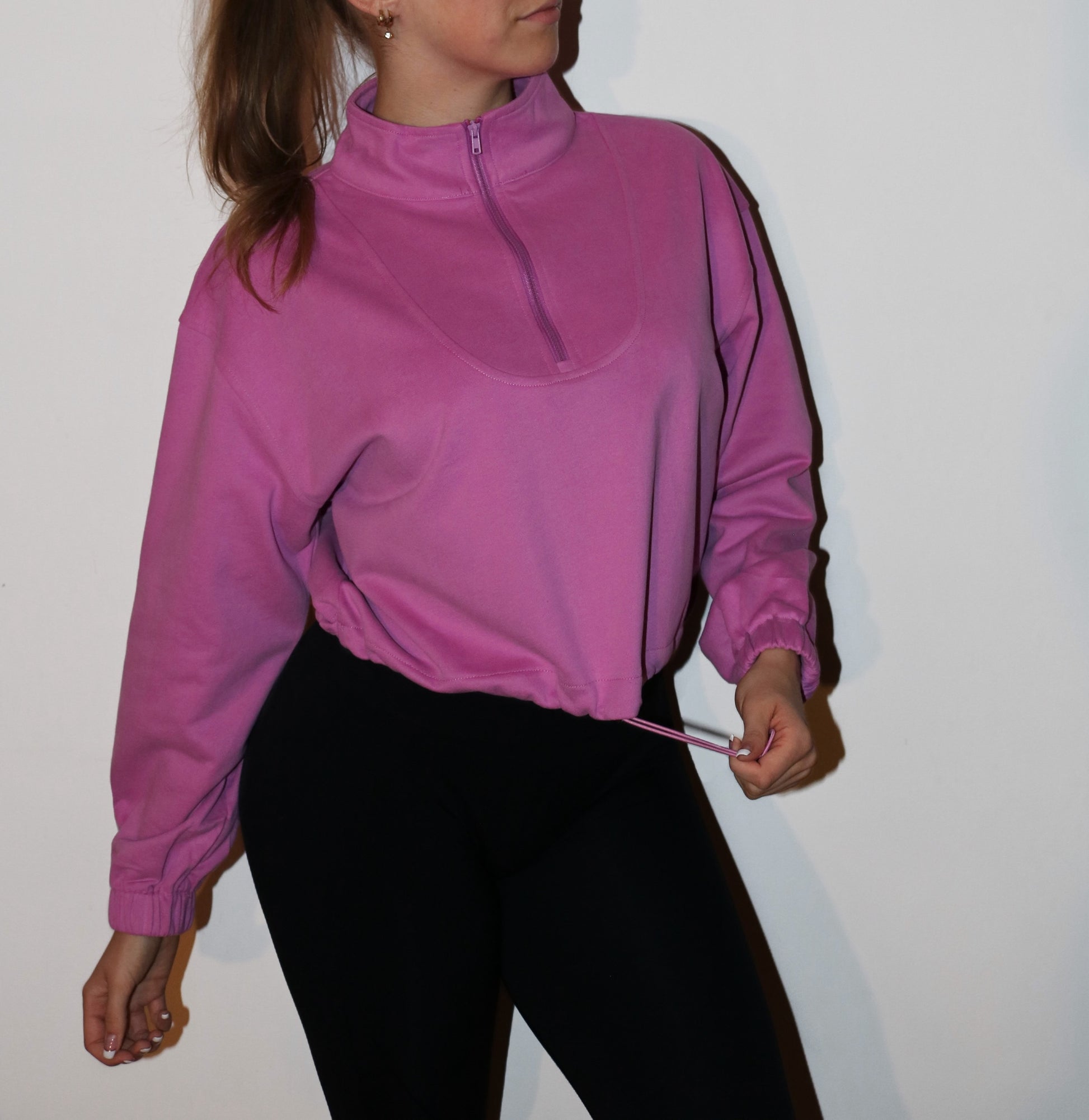 Långärmad half zip sweatshirt med dragsko i ett lätt och bekvämt material. Ärmar med resårmudd.